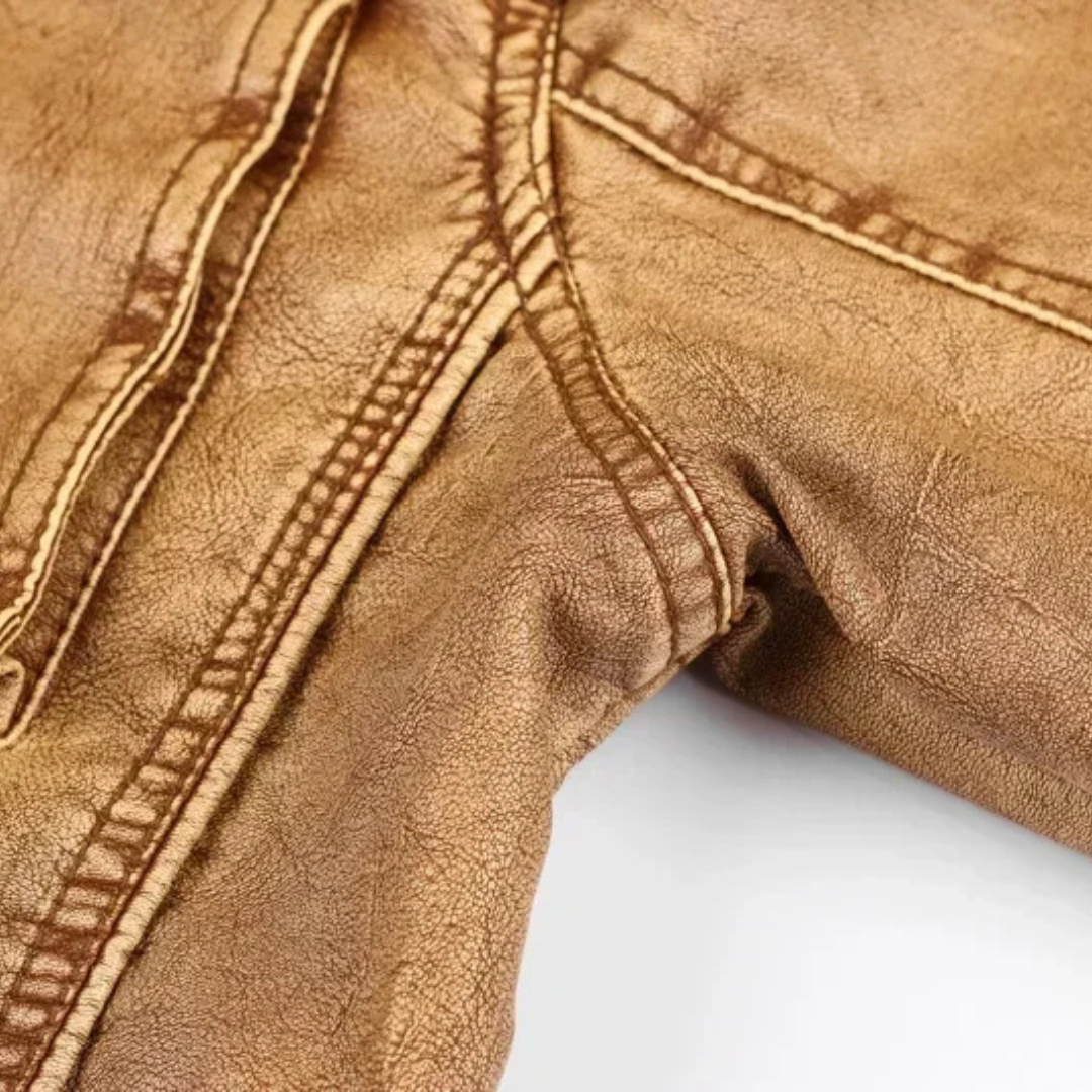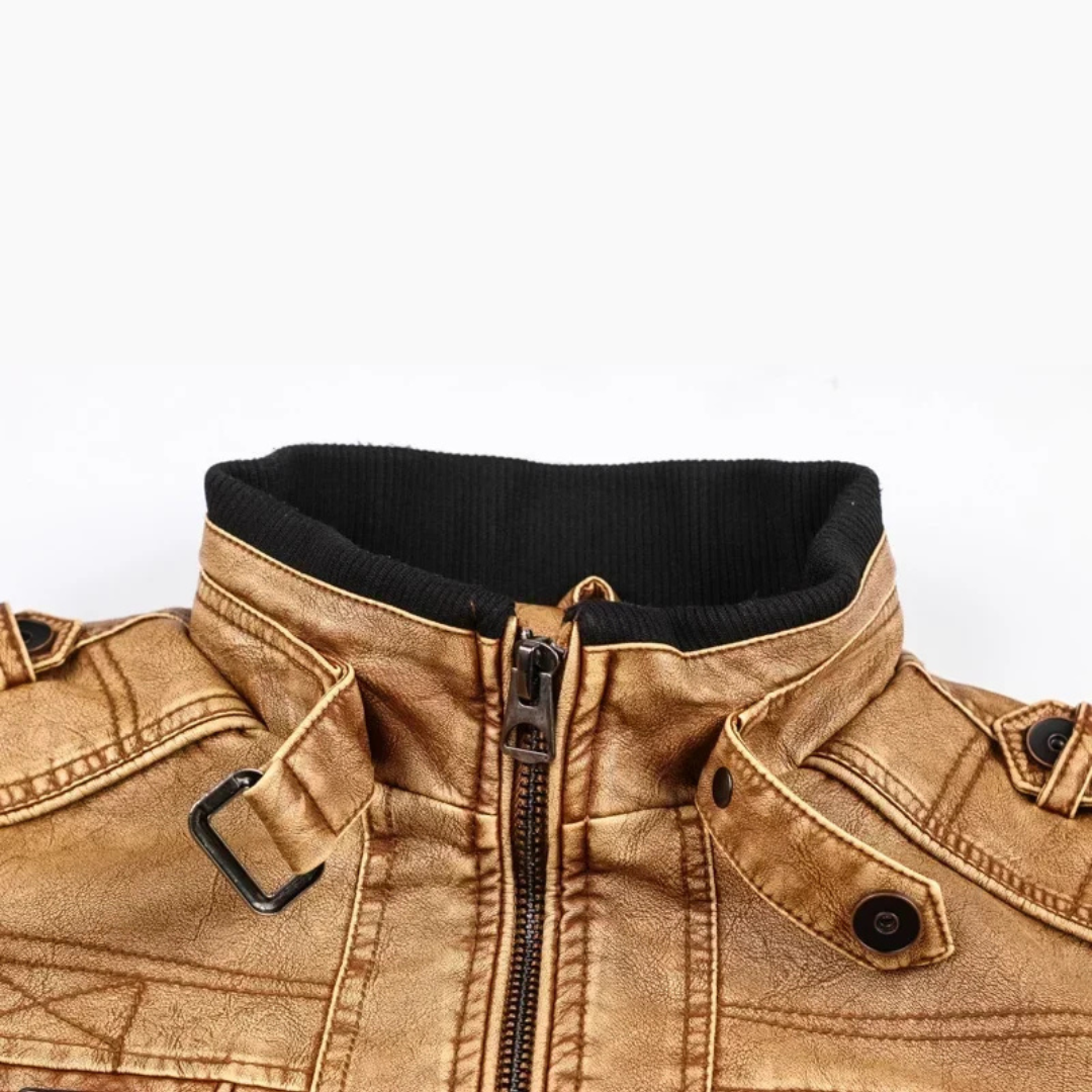 Eine auffällige Lederjacke für Männer, die Wert auf Stil, Widerstandsfähigkeit und einen kompromisslosen Auftritt legen.