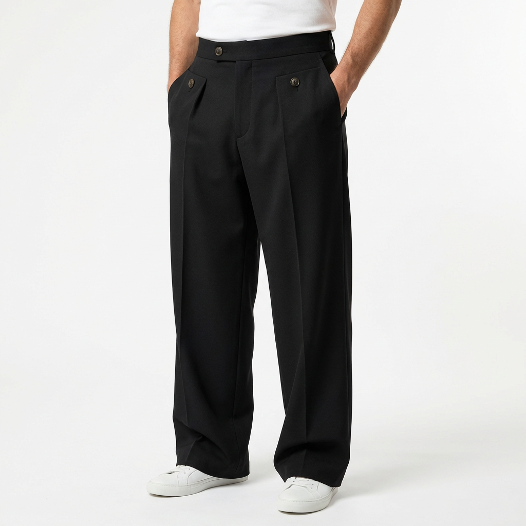 Die strukturierte hohe Taille und die vorderen Bundfalten formen eine gestreckte, ordentliche Silhouette, während das weiche Material jede Bewegung natürlich begleitet. Ideal fürs Büro, formelle Anlässe oder einen anspruchsvollen urbanen Look – RICK™ sorgt stets für ein makelloses Erscheinungsbild.